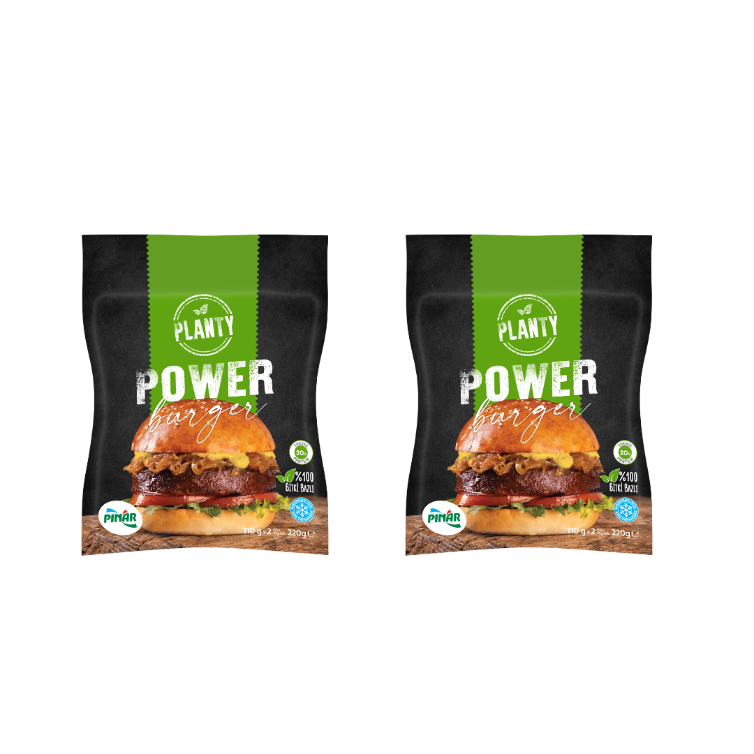 Planty olarak, en küçük seçimlerin yaşamlarımız ve çevremiz üzerinde en büyük etkiye sahip olabileceğine inanıyoruz. Yemek yeme alışkanlıklarımızı değiştirmek, kendimizi daha iyi hissetttirme ve hayatımızı iyileştirme gücüne sahiptir. Belki daha da önemlisi, vegan beslenme ile daha sürdürülebilir üretim ve tüketim biçimlerine katkıda bulunabiliriz. Bildiğimiz burgere lezzetli bir alternatif sunan Planty Power Burger, bir bitkisel protein olan bezelye proteini, hindistan cevizi yağı ve ayçiçek yağı kullanılarak yapılır. Vejetaryen lik ve vegan beslenmek için uygundur. Bir adet burger 110 gramdır ve 20 gram bitkisel protein içerir. Beklediğiniz bitki bazlı burger lezzeti, artık Planty Power Burger’de.