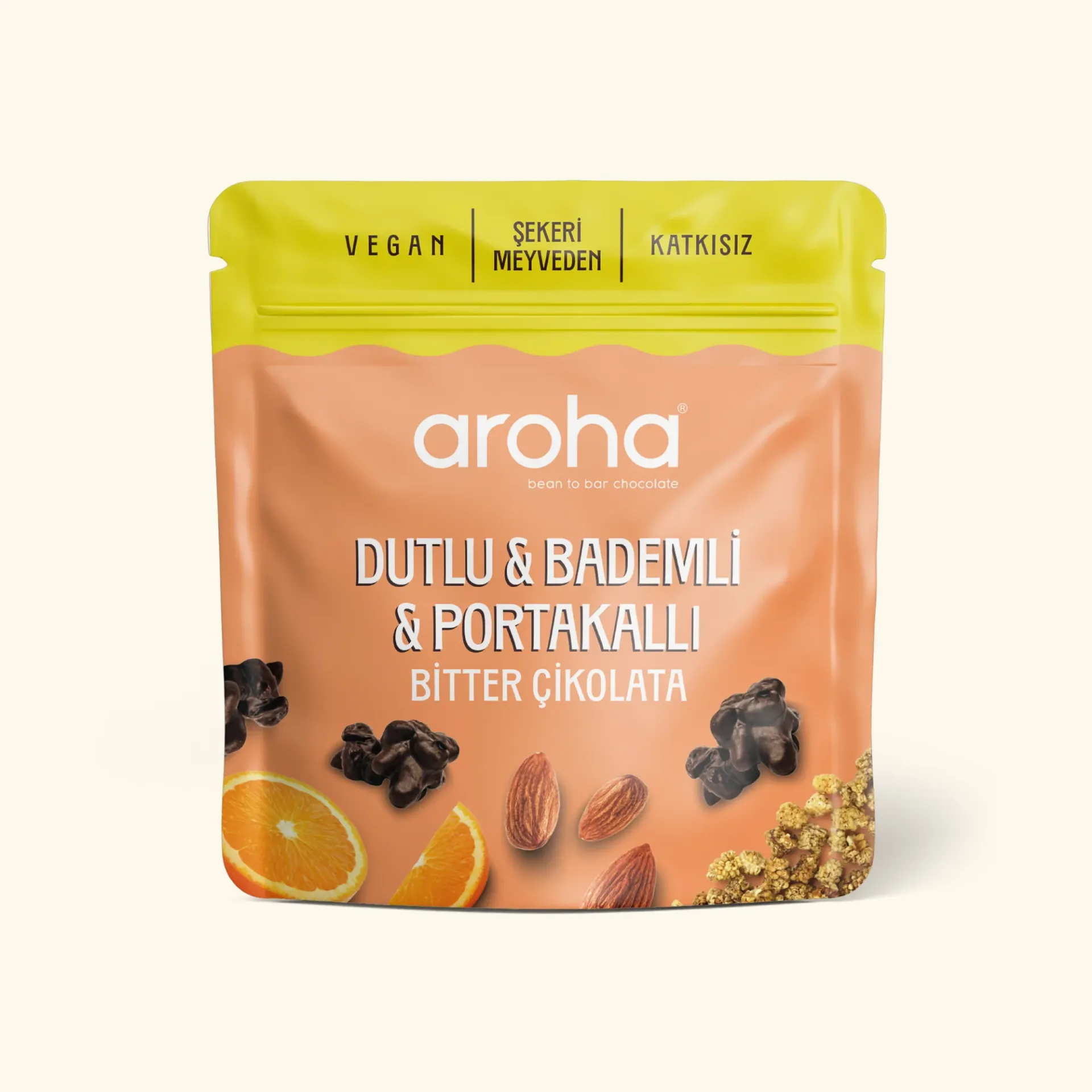Kendi çikolatasını kendi formülüyle üreten Aroha'dan çikolata kaplı dutlu badem! Daha önce yediğiniz bütün çikolataları unutun. Gerçek çikolata lezzetinden gelen sağlıklı atıştırmalık.