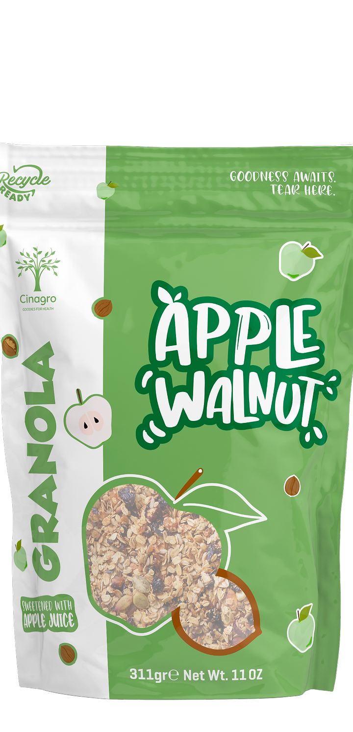 Cinagro Goodies olarak sağlıklı yaşamın, sağlıklı gıdalardan geçtiğine inanıyoruz. Vücudumuz için faydalı ve fonksiyonel gıdaları tükettiğimizde, kendimizi daha iyi ve dinç hissederken, daha iyi yaşıyoruz. Bu tutkumuzu sizlerle paylaşarak en iyi gıdaları en az işlem görmüş şekilde sunuyoruz. Cinagro Granola paketini açtığınızda rahiyaların karşı konulamaz hissiyatına ve yulafın cömert iyilik parçalarıyla sizi karşılamasına hazır olun. Fırında ağır ağır elma suyuyla demlenerek pişmiş yulafın, hindistan cevizinin ve zeytinyağının acıktıran uyumunu tadın. Gelecek sefer karnınız guruldamaya başladığında bir parça Cinagro Granola'nın tadını sade olarak çıkartabilir veya keyfinize göre süt, yoğurt, meyve suyu ile karıştırabilirsiniz. Daha da ileri gitmek isterseniz, bir kup dondurma ile sınırları zorlayabilirsiniz.