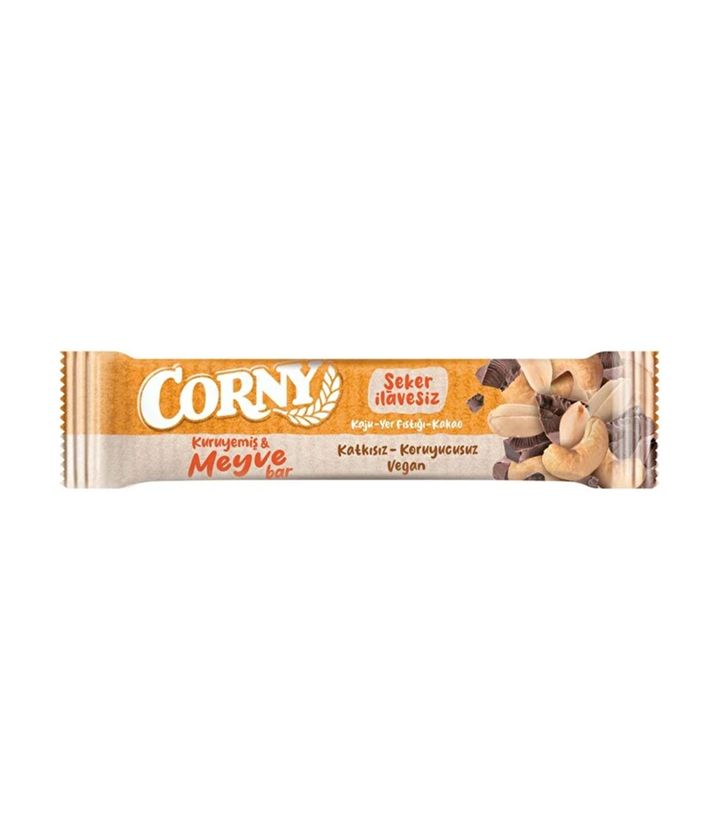 Doğal protein arayanlara özel, yerken iyi, yedikten sonra iyi hissettiren harika bir atıştırmalık. Şeker ilavesiz, katkısız, koruyucusuz, vegan Corny Kaju - Yer Fıstığı – Kakao
