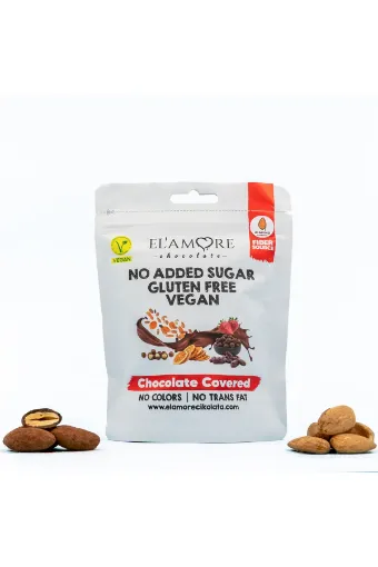 Çikolata* (%67) [Kakao kitlesi, maltitol (tatlandırıcı), kakao yağı, ayçiçek lesitini (emülgatör), vanilin (aroma verici)], badem (%36,5), kakao tozu (%4), tuz (0,4).