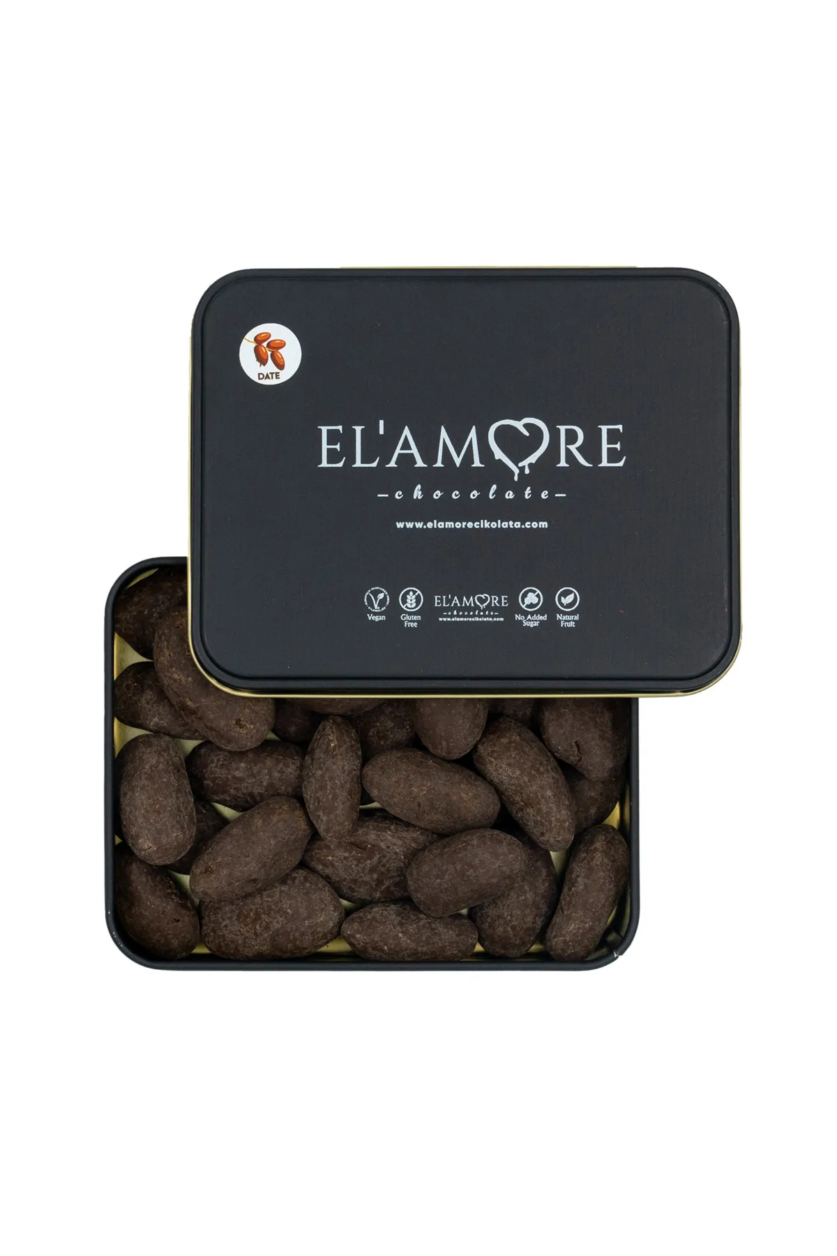 Elamore Şeker İlavesiz Hurmalı Bitter Çikolata 150 gr Metal Kutu