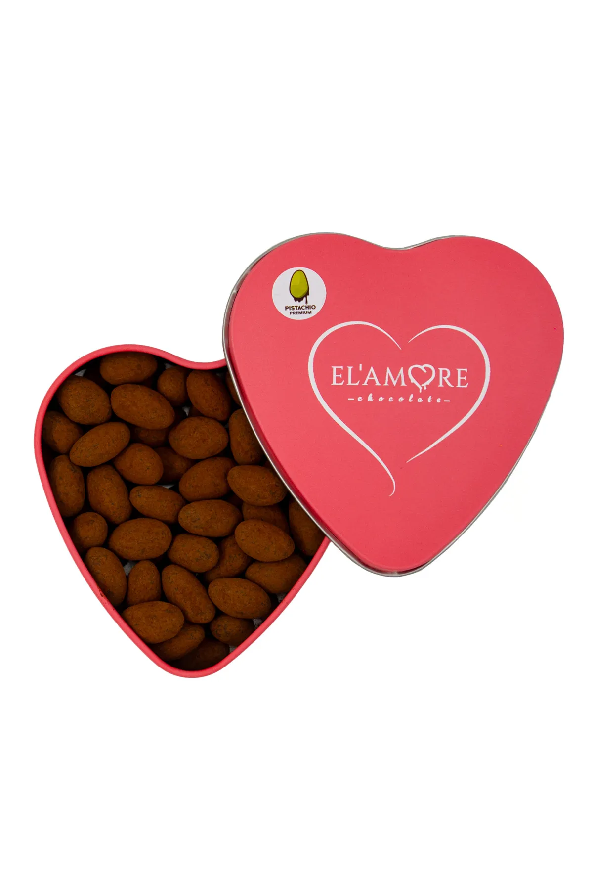 El'amore Şeker İlavesiz, Glütensiz, Vegan Premium Antep Fıstıklı Bitter Çikolata - Pembe Küçük Kalp Metal Kutu, 80 gr El'amore Çikolata, şeker ilavesiz, glütensiz, vegan formülüyle yoğun kakao lezzetini Belçika ustalarının tarifleriyle buluşturuyor. %60 kakao oranına sahip gerçek bitter çikolata ile kaplanan premium antep fıstığı tatlı ihtiyacınızı benzersiz bir deneyime dönüştürüyor. Şık metal kutu tasarımıyla, kendiniz için enfes bir lezzet sunarken, aynı zamanda özel günlerde sevdiklerinize zarif bir hediye alternatifi oluşturur!