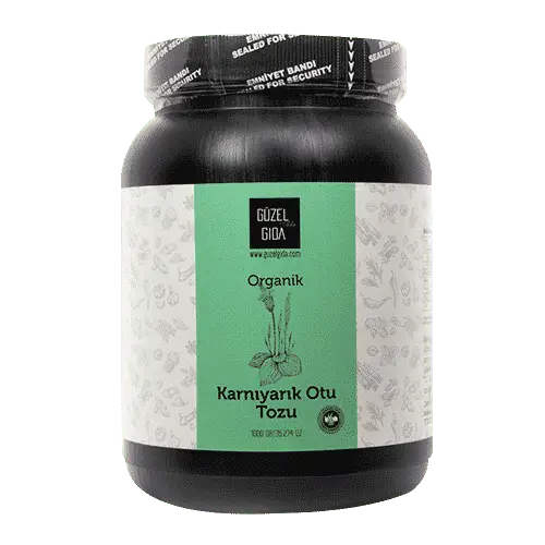 Karnıyarık otu veya nam-ı değer Psyllium tozu i-na-nıl-maz bir besin. %80 i lif olan bu güzellik, günlük kullanımınız için içinde ölçü kaşığı ile birlikte geliyor. Lif bakımından oldukça güçlü olan Psyllium'un (Karnıyarık Otu) toz halini dilerseniz suya karıştırıp tüketebileceğiniz gibi özellikle glutensiz unlar ile hazırladığınız enfes tariflerinizde de kullanabilirsiniz.