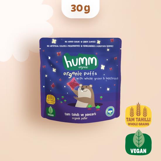 Humm Organic Pancarlı ve Tam Tahıllı Vegan Puflar, atıştırmalık saatlerinize renk ve lezzet katacak! Bu ağızda dağılan gevrekler, aynı zamanda kahvaltınıza eşlik ederek güne harika başlamanızı sağlayacak.