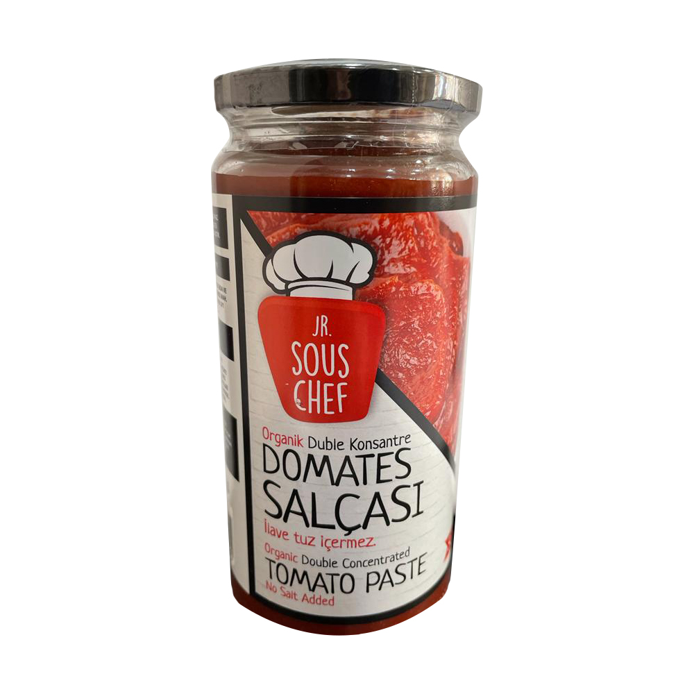 Ege Bölgesi’nde iyi tarım uygulamaları ile mevsiminde olgunlaşan domateslerin tamamen organik yöntemlerle üretilmesiyle elde ettiğimiz Jr. Sous Chef Domates Salçası, hiçbir katkı maddesi, koruyucu, renklendirici ve ilave tuz içermez. Her bir kavanozunda 4 kg domates olan bu salçanın, %65 likopen oranı ve kendine has aromasıyla birbirinden lezzetli yemekler ve soslar elde edebilir; bazen de çocukluğunuza dönüp ekmek üstü olarak da tüketebilirsiniz. Deneyin, bayılacaksınız.