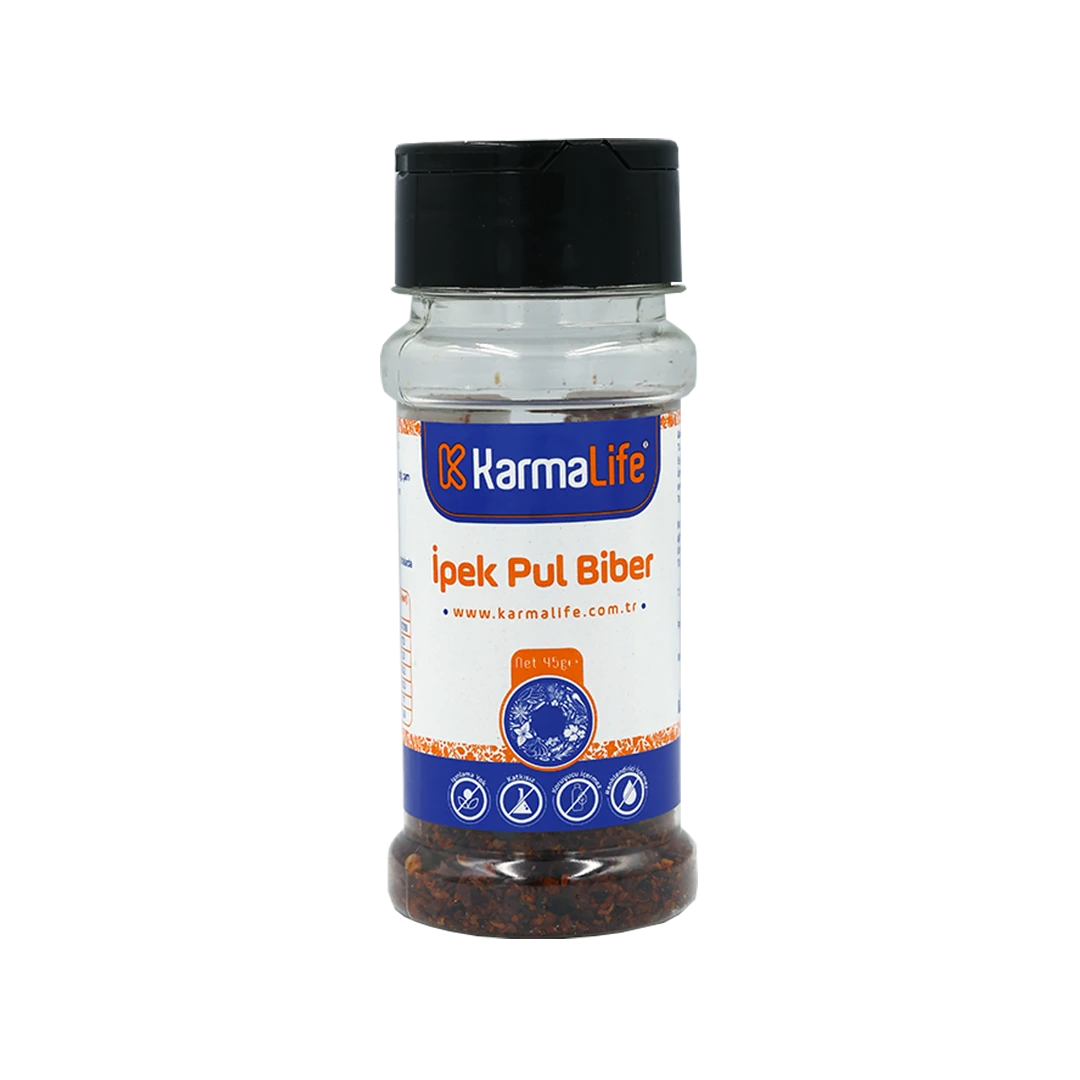 Yemeklerinize renk, aroma ve hafif bir acılık katmak için özenle seçilmiş, tamamen katkısız ve doğal biberlerden üretilen İpek Pul Biber, 45 gramlık pratik ambalajıyla mutfağınızda yerini alıyor. Salatalardan ana yemeklere kadar her tarifte gönül rahatlığıyla kullanabileceğiniz İpek Pul Biber, doğal lezzet arayanlar için ideal bir tercih!
