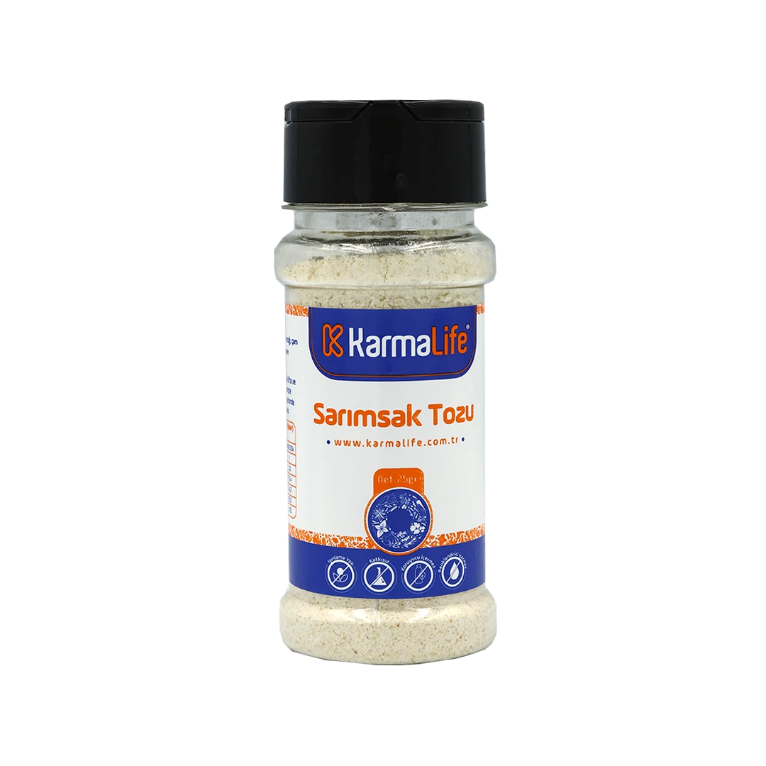 İçindekiler: Sarımsak tozuAlerjen Uyarısı: Eser miktarda antep fıstığı, çam fıstığı, gluten, kereviz, haşhaş ve susam içerebilir.Kullanım Alanı: Bitkisel etlerde, çiğ köfte harçlarında, makarna, mantı ve erişte hamurlarına katkı olarak; ayrıca mezelerde, soslarda ve çeşnilerde kullanılır.