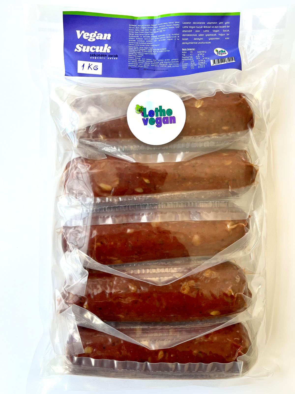 Lethe Vegan Sucuk lezzetini bol, taze sebze ve yüksek oranda içerdiği bakliyat karışımından alır. Gluten oranı az olduğu için rahatsız etmez. Katkısız ve koruyucusuzdur. Tertemiz içerikle sofranıza gelir.