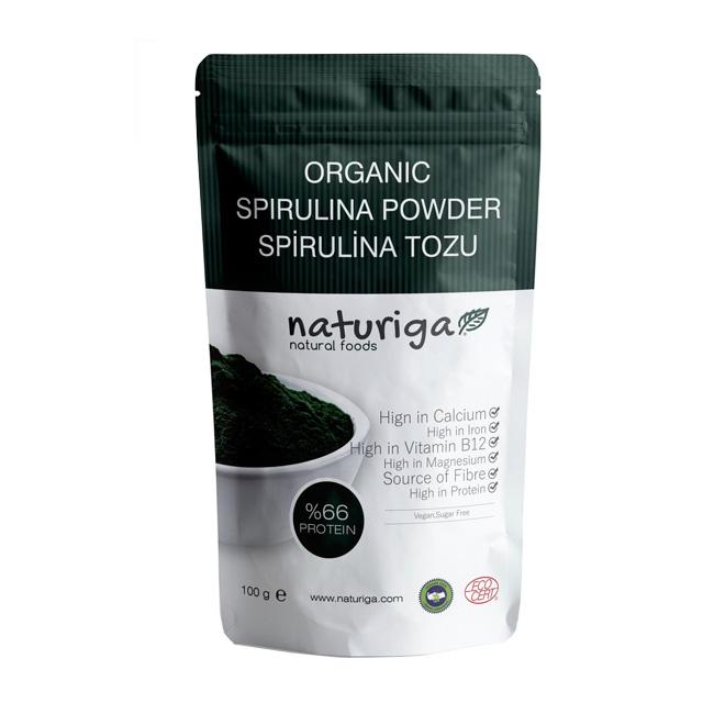 %100 doğal Spirulina yosunu tozu. Doğal olarak yüksek oranda kalsiyum, demir, magnezyum ve B12 vitamini içerir. Lif kaynağıdır. Doğal olarak %66 protein içerir.