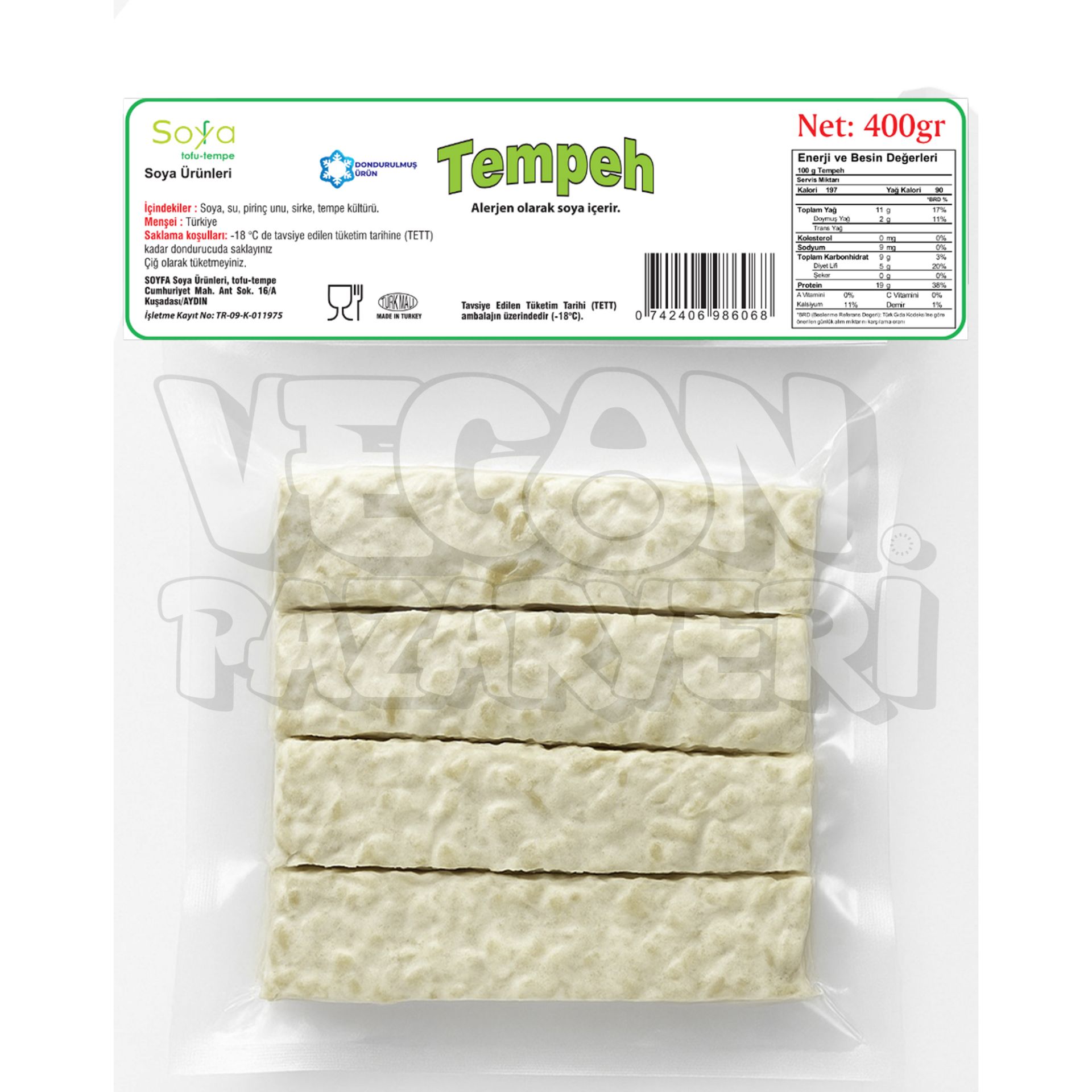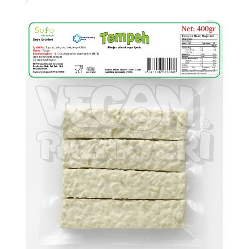 Pişirme önerisi: Tempehi yaklaşık 5mm kalınlığında dilimler halinde kesin, bir tavada ısınmış 2 çorba kaşığı yağda kızarana kadar (3-5 dakika) kızartın ve soya sosu, acı biber veya sevdiğiniz herhangi bir sosla servis edin. Alternatif olarak; rendeleyerek de kullanabilirsiniz. Kızartmalara, salatalara, çörekelere, çorbalara ve sandviçlere ekleyebilirsiniz.