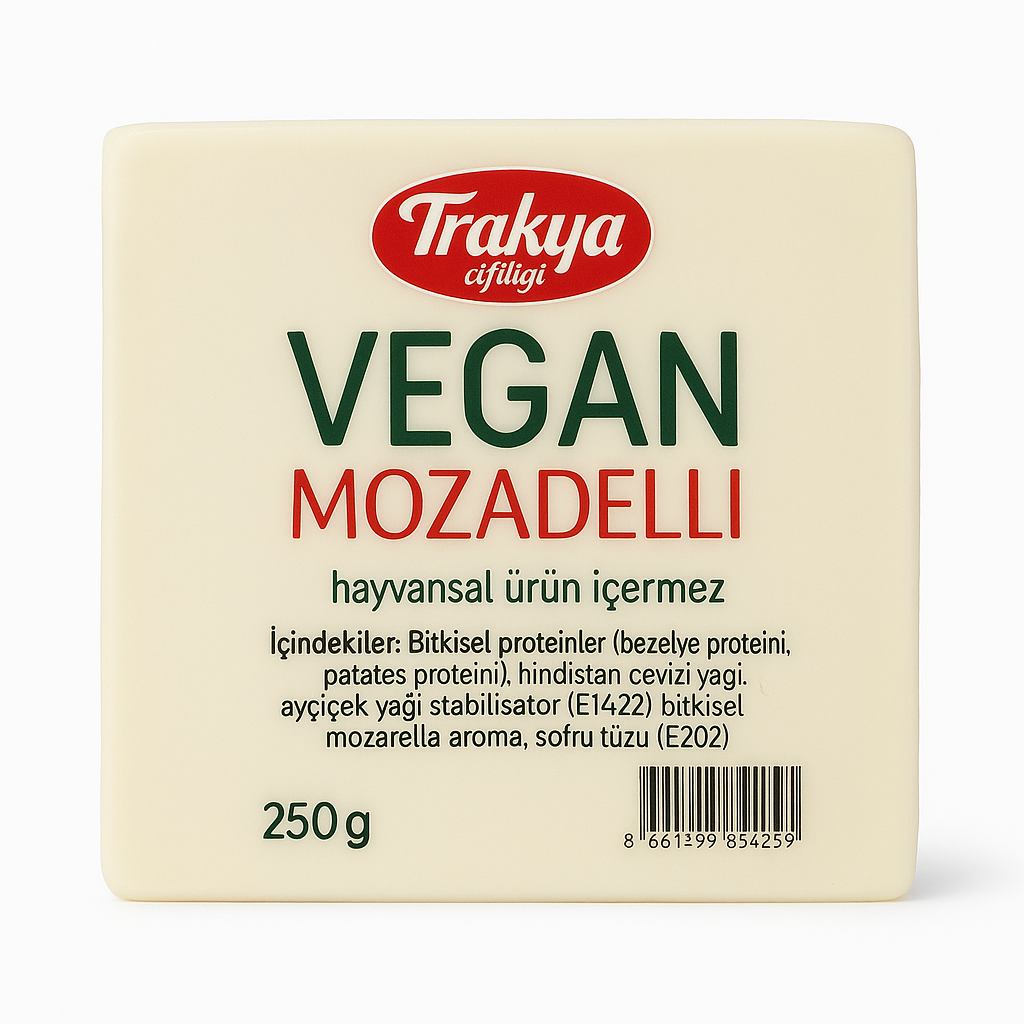 İçindekiler: Bitkisel proteinler (bezelye proteini, patates proteini) hindistan cevizi yağı, ayçicek yağı stabilizatör (E1422) bitkisel mozarella aroma, sofra tuzu, koruyucu (E202)