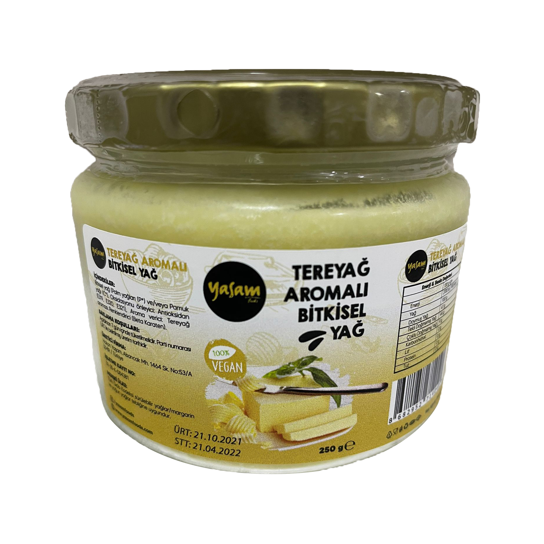 Bitki bazlı vegan tereyağı. Mutfağınızda katı yağ tercih ettiğiniz tüm tariflerinizde kullanabilirsiniz. Laktoz ve hayvansal ürün içermez.